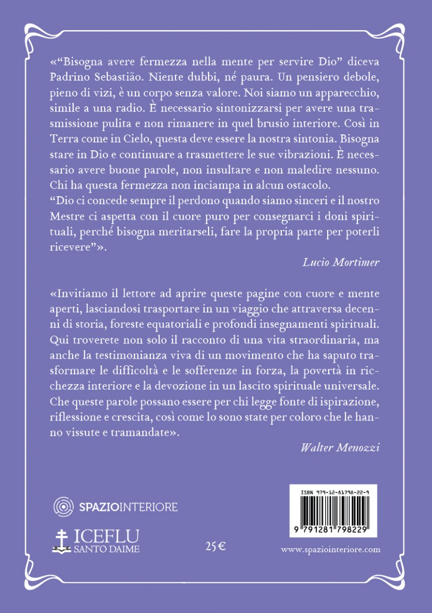 Figura chiave del Santo Daime, Padrino Sebastião Mota de Melo è stato uno dei grandi leader spirituali dell’Amazzonia contemporanea. Contadino analfabeta ma dotato di profonda saggezza, raccolse negli anni Sessanta l’eredità del fondatore Raimundo Irineu Serra e guidò l’espansione del movimento oltre la foresta, fino alle grandi città brasiliane e al mondo. Il libro ricostruisce la sua vita straordinaria: l’incontro con il Daime e Mestre Irineu, la nascita della comunità del Céu do Mapiá, il dialogo con i pellegrini del movimento hippie e l’apertura verso altre Piante di Potere, come la Santa Maria. Tra testimonianze, documenti e narrazione storica, emerge il ritratto intenso di un uomo semplice e visionario, capace di trasformare la propria fede in un’esperienza collettiva di spiritualità, ecologia e libertà interiore. Un testo di riferimento fondamentale per comprendere le radici e l’espansione del Santo Daime e il profilo di uno dei suoi protagonisti più influenti.