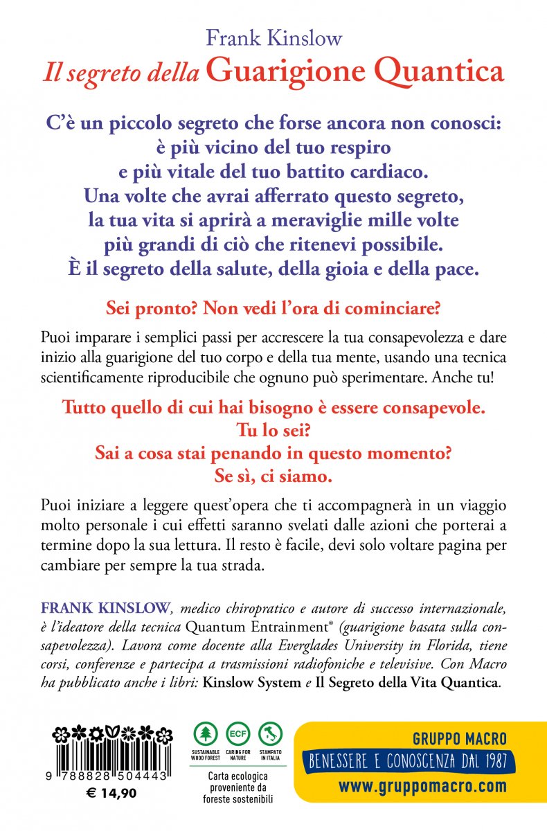 Frank Kinslow ti accompagna, con questo libro, lungo un cammino che ti condurrà innanzitutto a comprendere che cos’è la consapevolezza, ad abbracciare questo segreto come fosse un vecchio amico, e infine ad attirarlo nella tua vita per guarire il corpo, armonizzare le emozioni, acuire la mente, per creare una vita più produttiva e gioiosa.