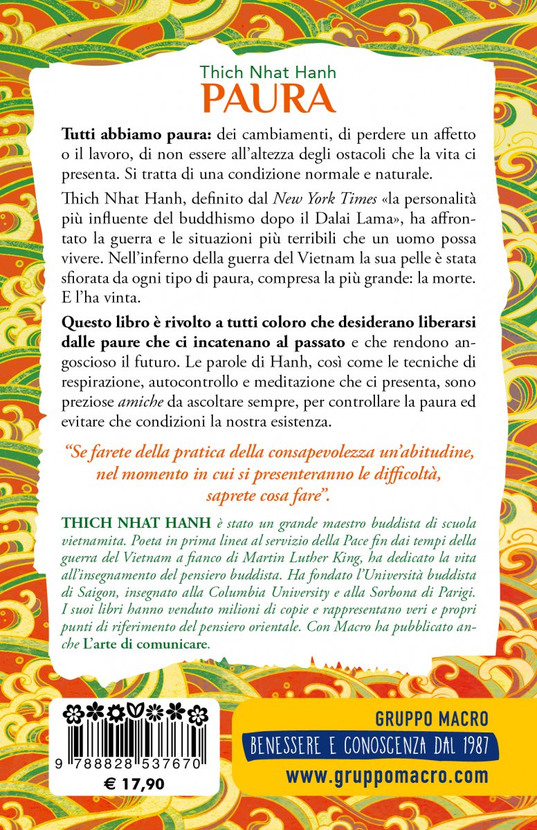 Questo libro è rivolto a tutti coloro che desiderano liberarsi dalle paure che ci incatenano al passato e che rendono angoscioso il futuro. Le parole di Hanh, così come le tecniche di respirazione, autocontrollo e meditazione che ci presenta, sono preziose amiche da ascoltare sempre, per controllare la paura ed evitare che condizioni la nostra esistenza.
