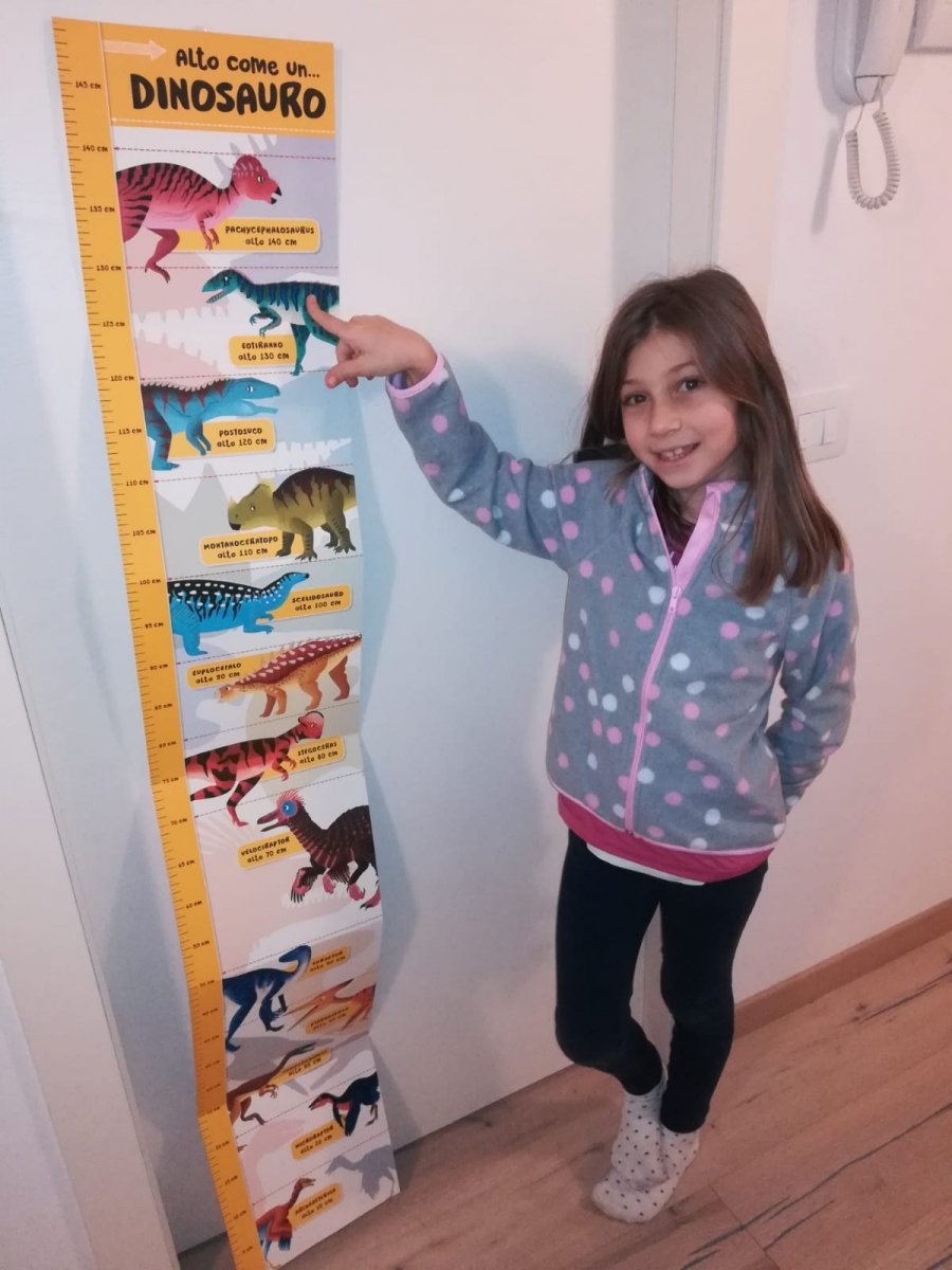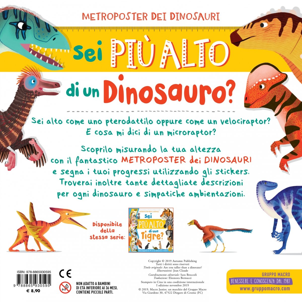 Scoprilo misurando la tua altezza con il fantastico metroposter dei dinosauri e segna i tuoi progressi utilizzando gli stickers. Troverai inoltre tante dettagliate descrizioni per ogni dinosauro e simpatiche ambientazioni.